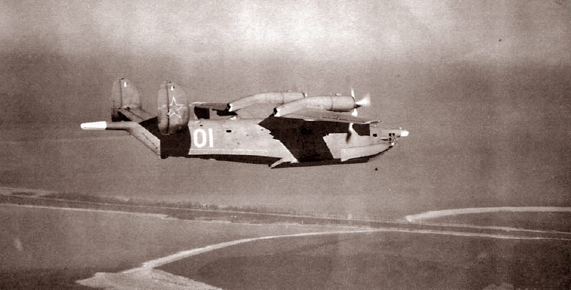 Бе-12 б/н 01 в полете над морем. Под самолетом Балтийская коса